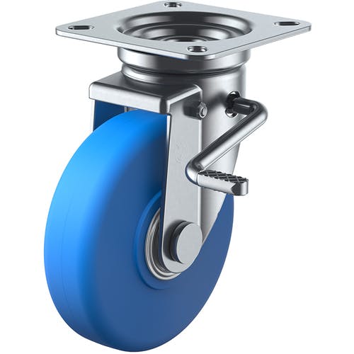 【CAINZ-DASH】ユーエイ キャスター事業部 プレート式 自在 キャスター モノマーキャストナイロン 車輪径150mm ストッパー付き Jタイプ JB(R)型 取付寸法94×94(87×87) MCBJB-150(R)【別送品】