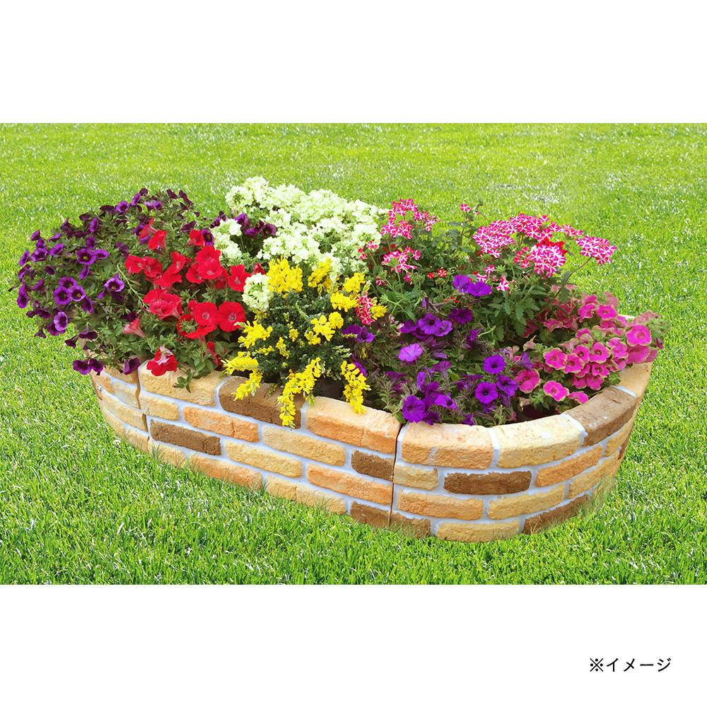 丸みのあるレンガ調花壇で、ぐんと明るい印象に