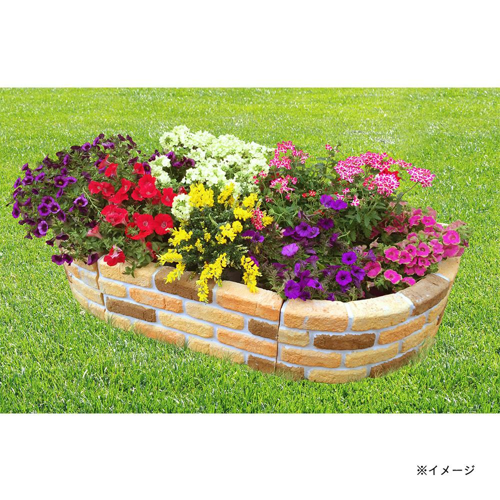 丸みのあるレンガ調花壇で、ぐんと明るい印象に