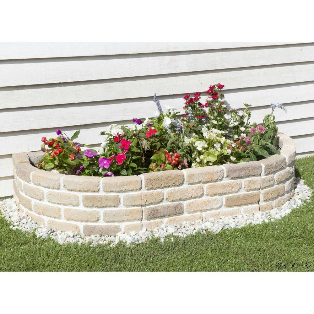 丸みのあるレンガ調花壇で、ぐんと明るい印象に