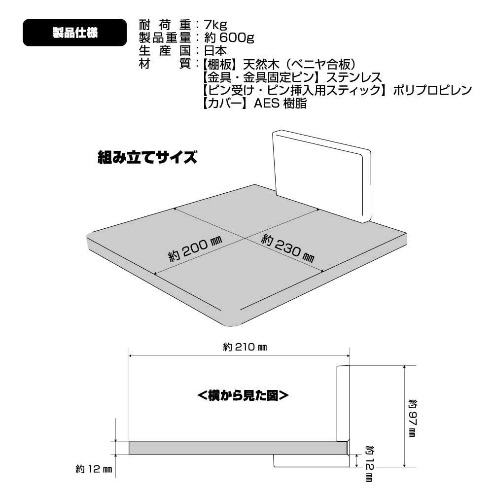 【棚板】天然木(ベニヤ合板) 【金具】ステンレス 【ピン受け・ピン挿入用スティック】ポリプロピレン 【カバー】AES樹脂