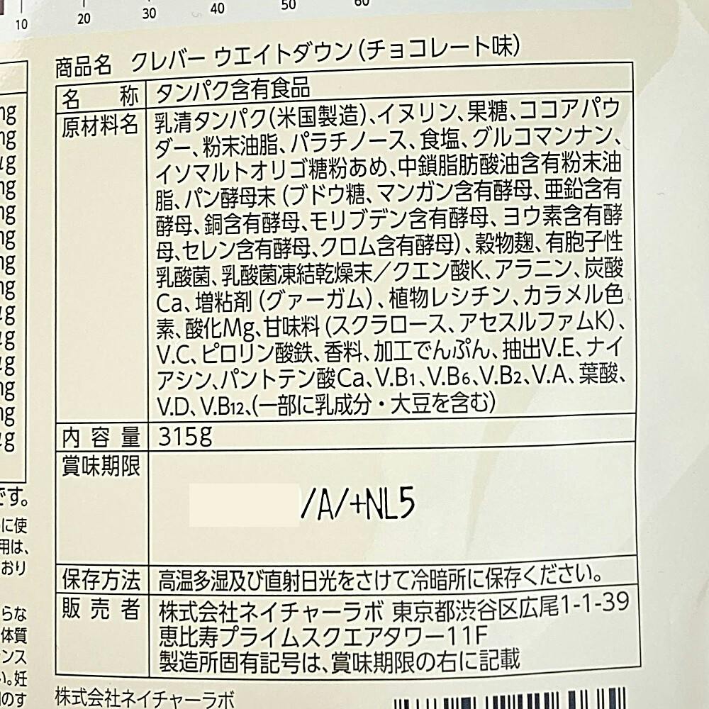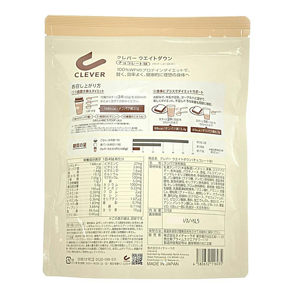 ネイチャーラボ クレバー プロテインウエイトダウン チョコレート 315g