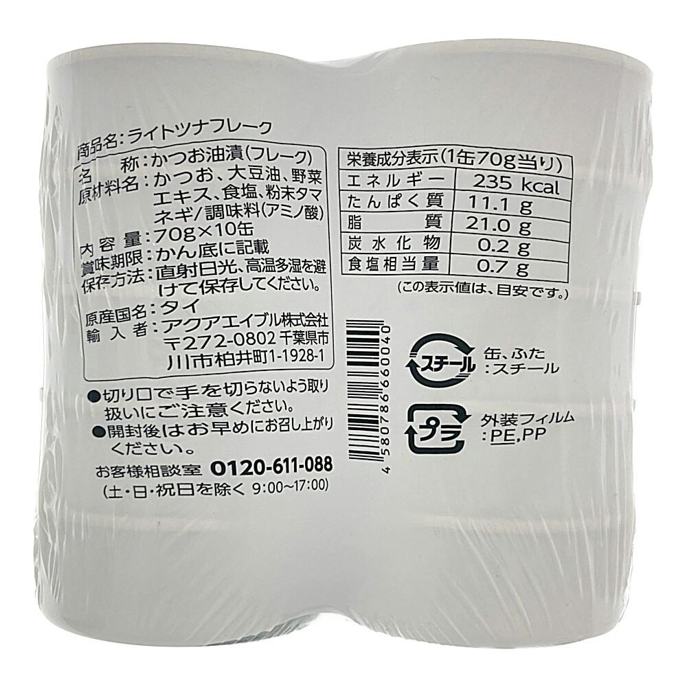 ライトツナ油漬フレーク 70g×10個