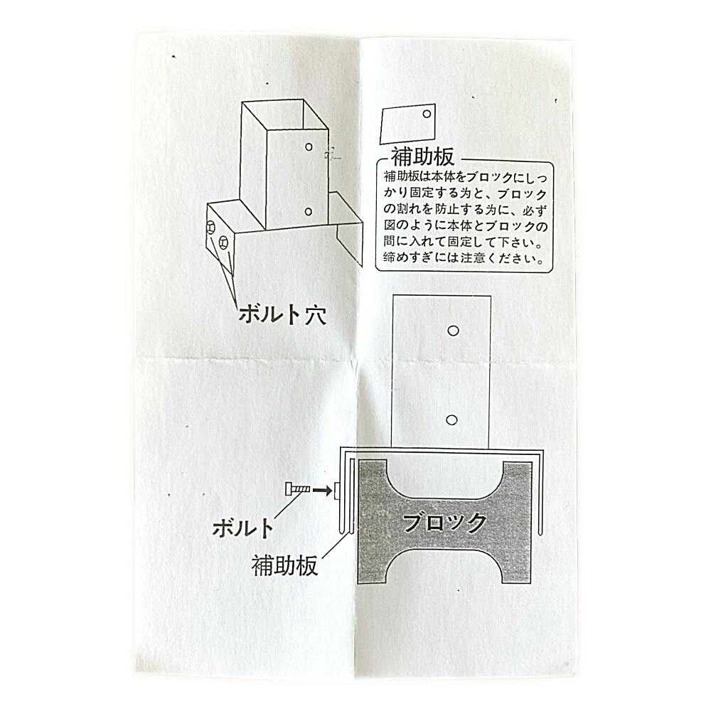 ●指定用途以外の使用はしないでください。●補助板は本体をブロックにしっかり固定するためと、ブロックの割れを防止するために、必ず図のように本体とブロックの間に入れて固定して下さい。●締めすぎには注意ください。