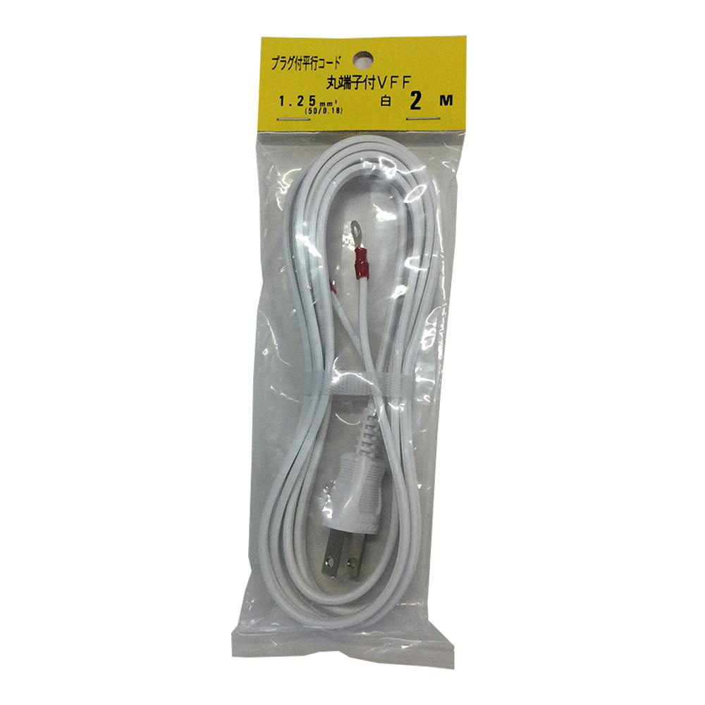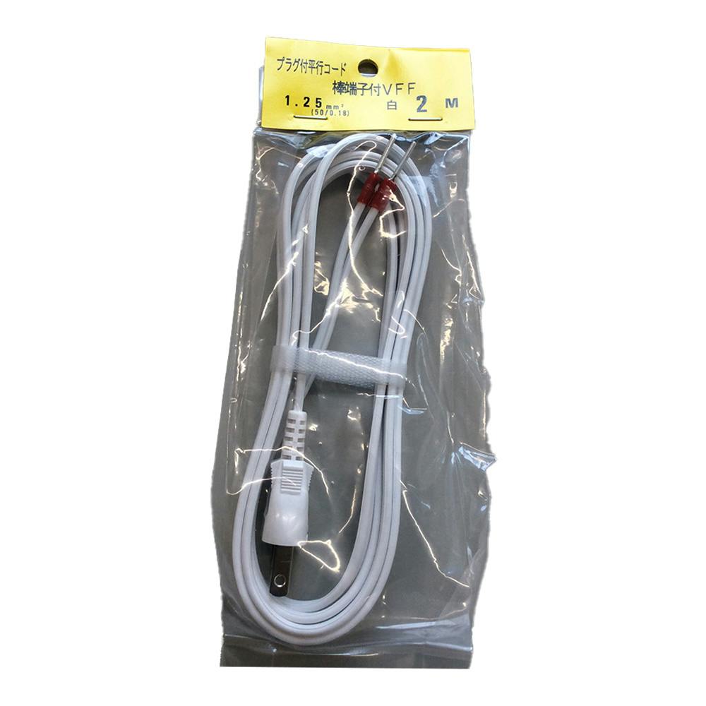 プラグ付き平行コード 棒端子付VFF 白 1.25SQ 2m