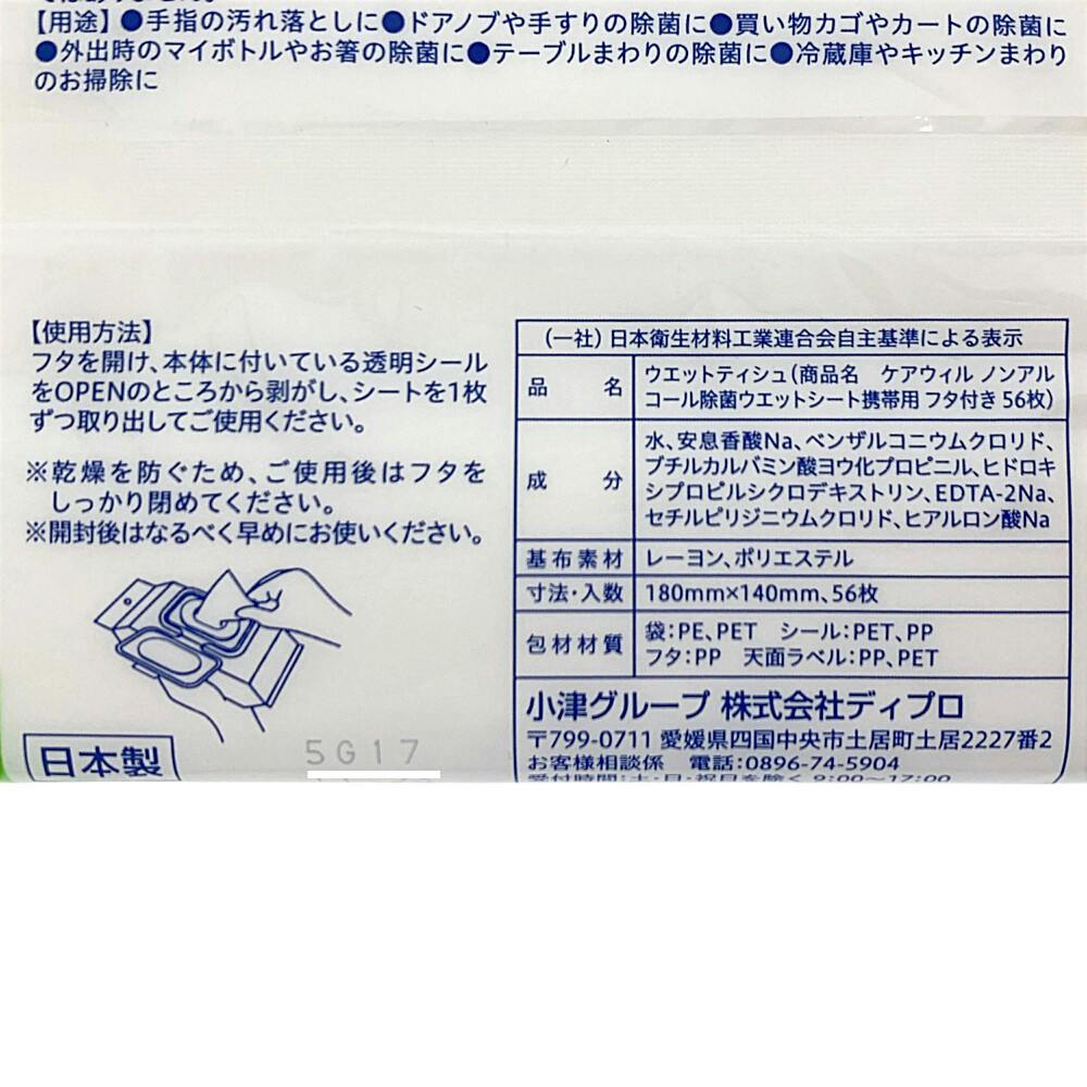 ケアウィル 除菌ウェットシート ノンアルコール 携帯用 56枚入