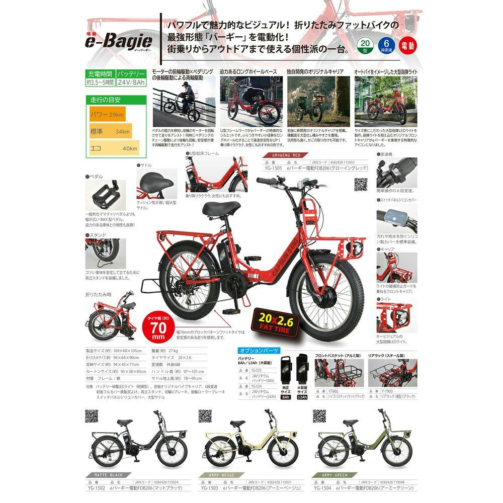 【自転車】CAPTAIN STAG eバーギー電動折りたたみ 20 FDB206 YG-1505 グローイングレッド