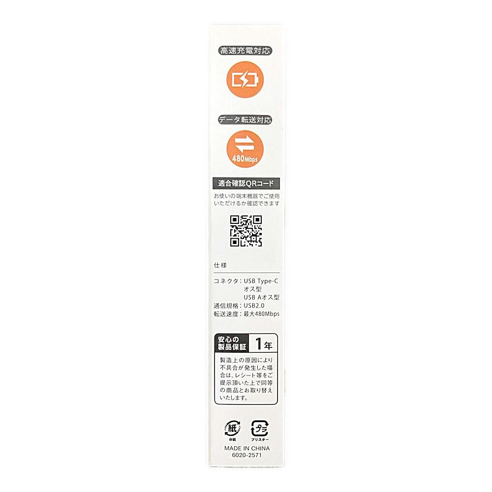 Type-C USB-Aケーブル 2m ホワイト