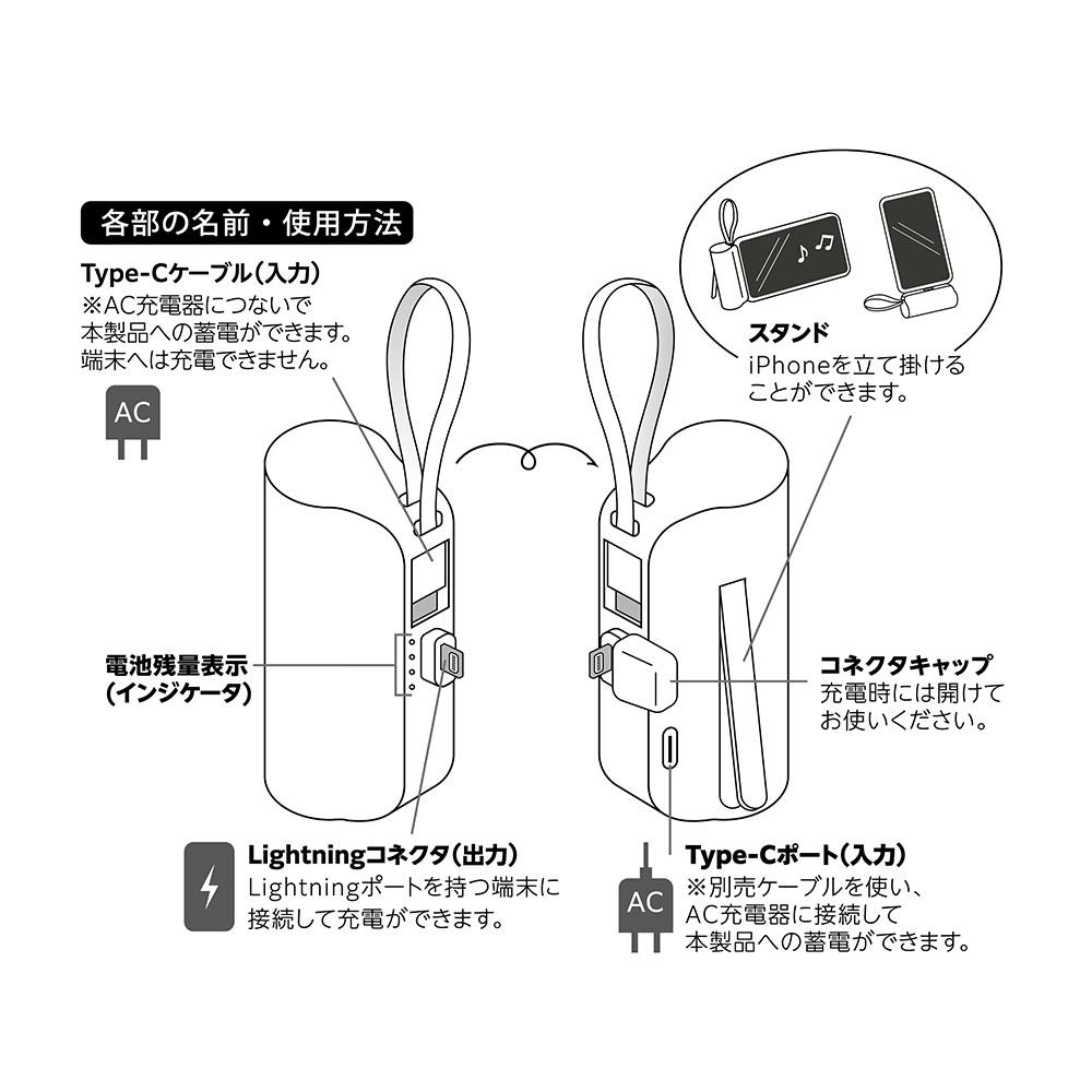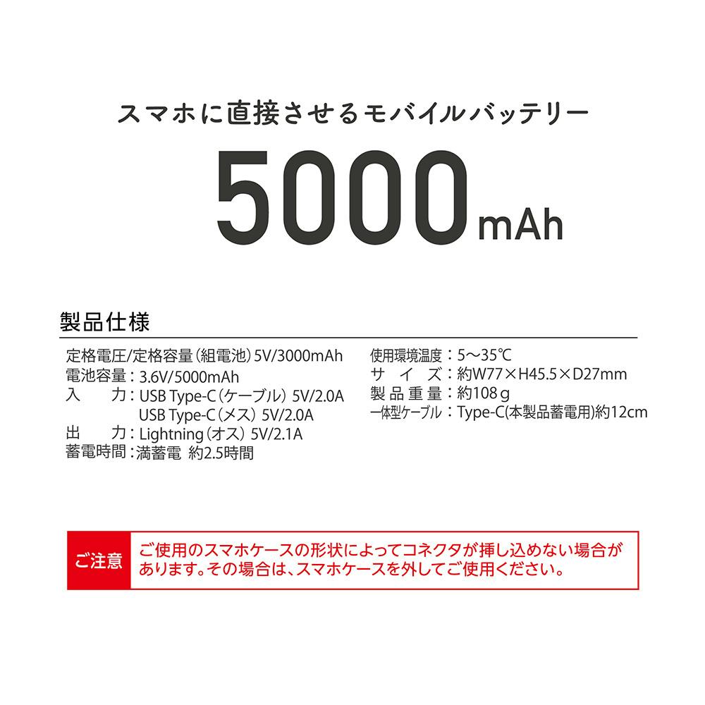 スマホに直接挿せるモバイルバッテリー 5000mAh Lightningモデル IH-LCLR50WH