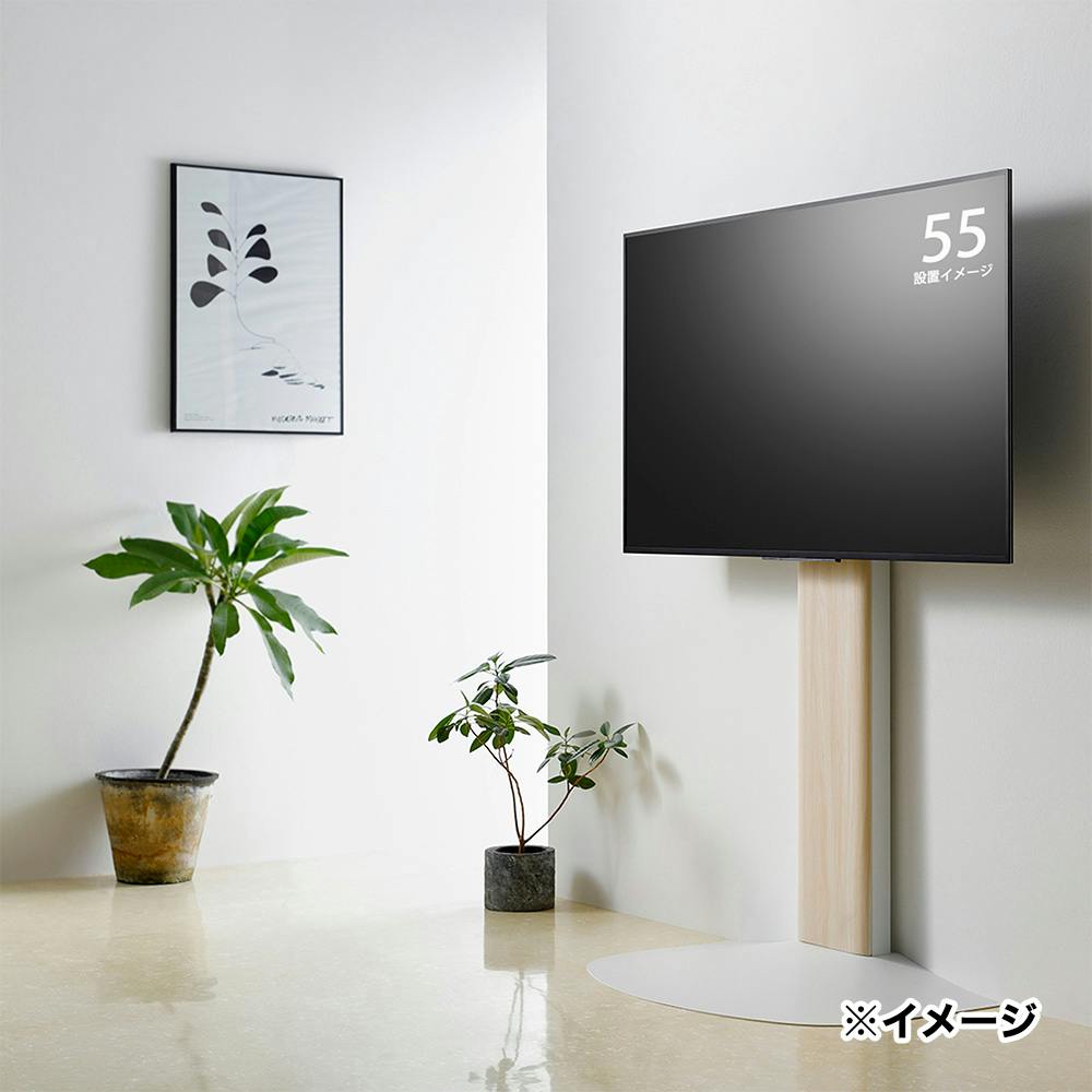 透き通る様なナチュラル×ホワイトの壁寄せTV台。VESA 100~600mm。最も注力したのは底板形状:底面にフィットする様に馴染み、つまずく危険性も少ないです。配線処理:背面には簡単に配線を結束出来るコードホルダー付。