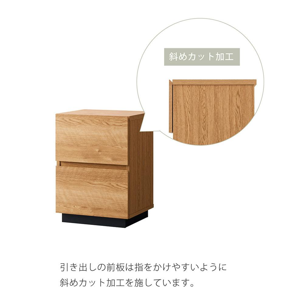 天然木のような木目調のサイドチェスト。ソファーサイドやベッドサイドでの使用や同シリーズのALKローボードとの組み合わせでリビングをトータルコーディネート出来ます。