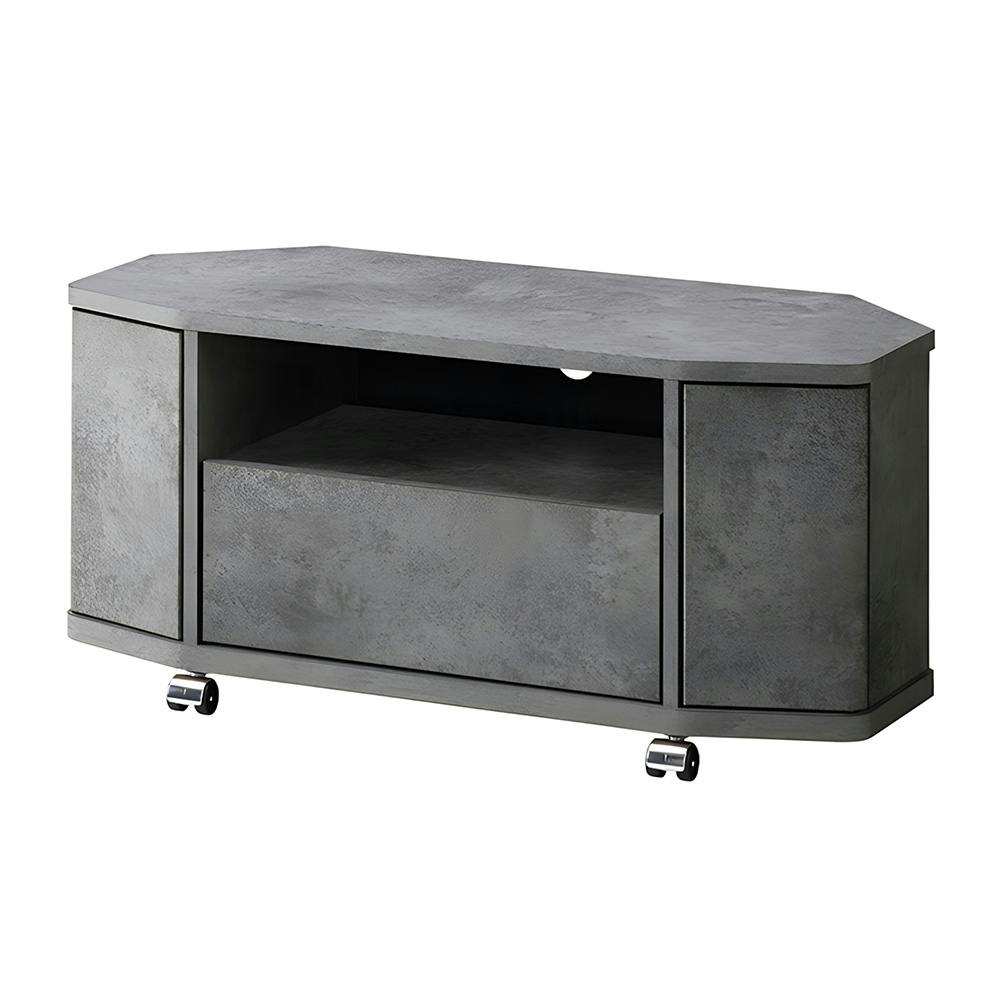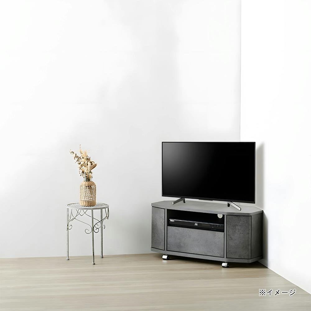 石目調(モルタル調)よるモダンな高級感のシートを採用した1ランク上のコーナーテレビ台。お部屋のコーナーにぴったりフィットし省スペース化を実現。キャスター付きで移動が出来、後ろの掃除や配線作業が楽々。引き出し(スライドレール)
