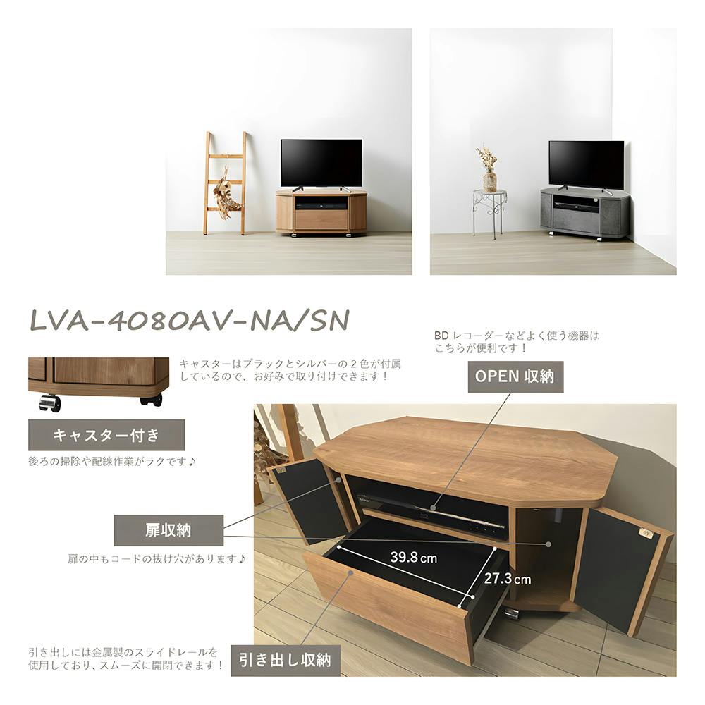 コーナーテレビ台 ストーン LVA-4080AV-SN 幅79cm 奥行36cm 高さ37.2cm【別送品】