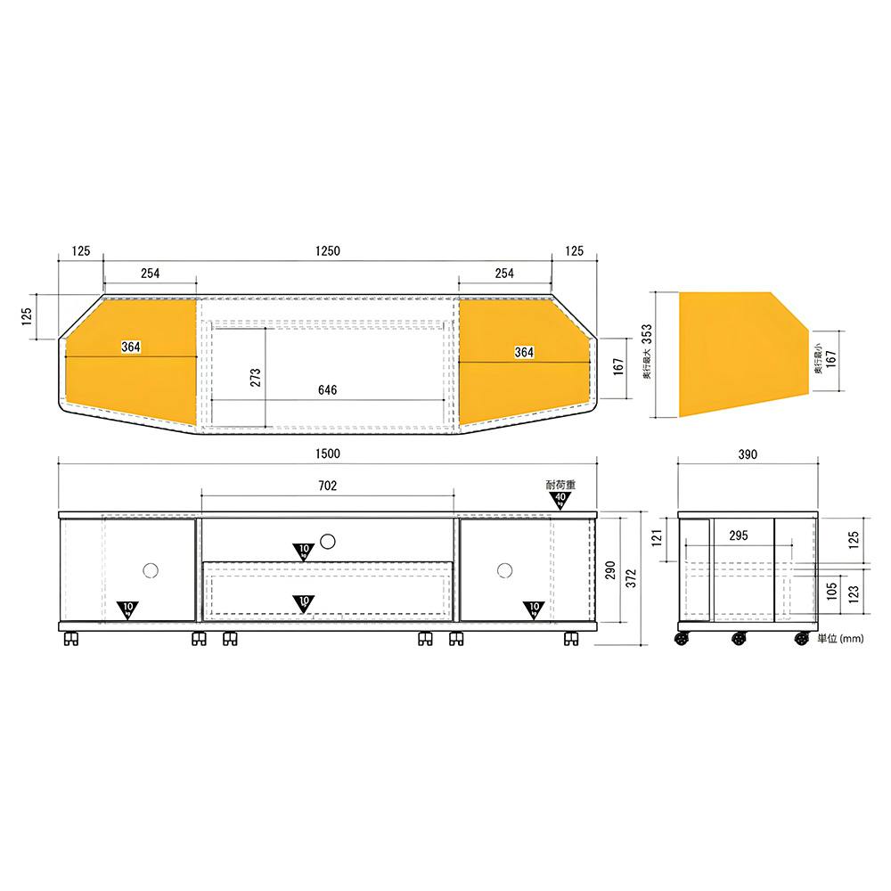 コーナーテレビ台 ナチュラル LVA-4015AV-NA 幅150cm 奥行39cm 高さ37.2cm【別送品】