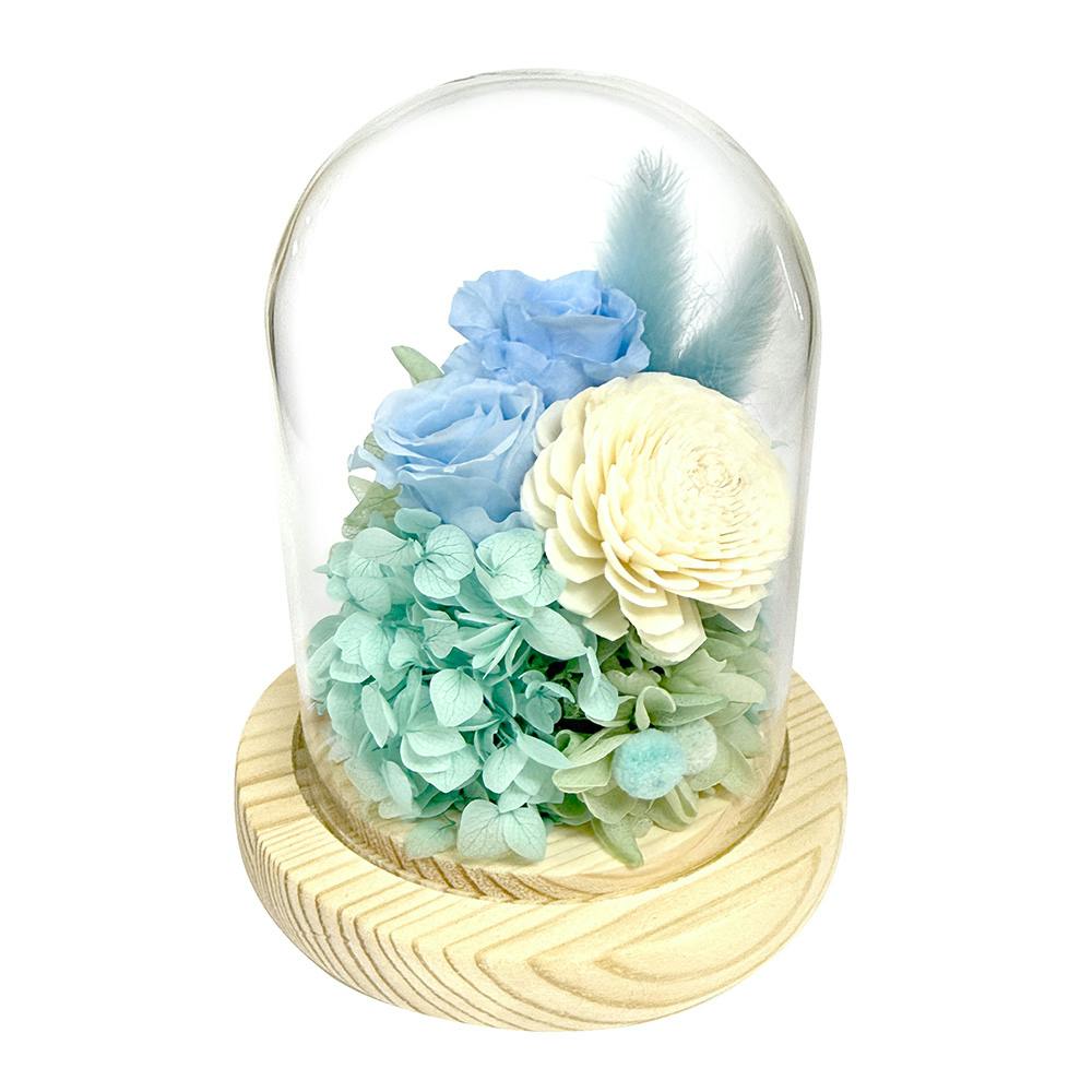 ガラスドームアレンジソレイユ/ターコイズ+ブルー
