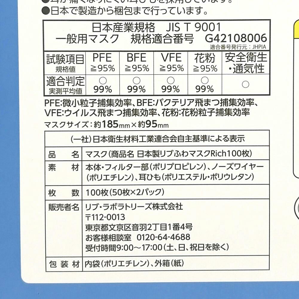 リブふわマスク リッチ 大きめサイズ 100枚