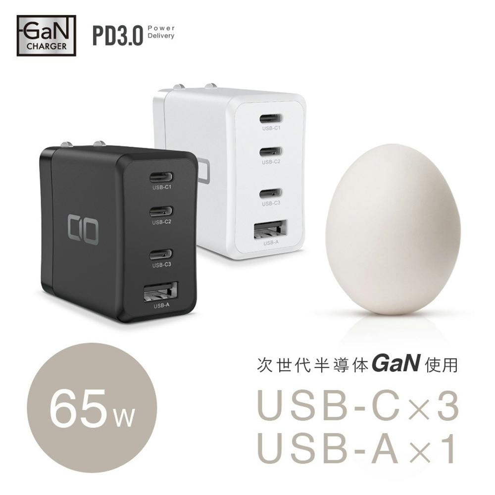 CIO ACプラグタイプ GaN65W急速充電器 4ポート CIO-G65W3C1A-WH USB-C×3 USB-A×1