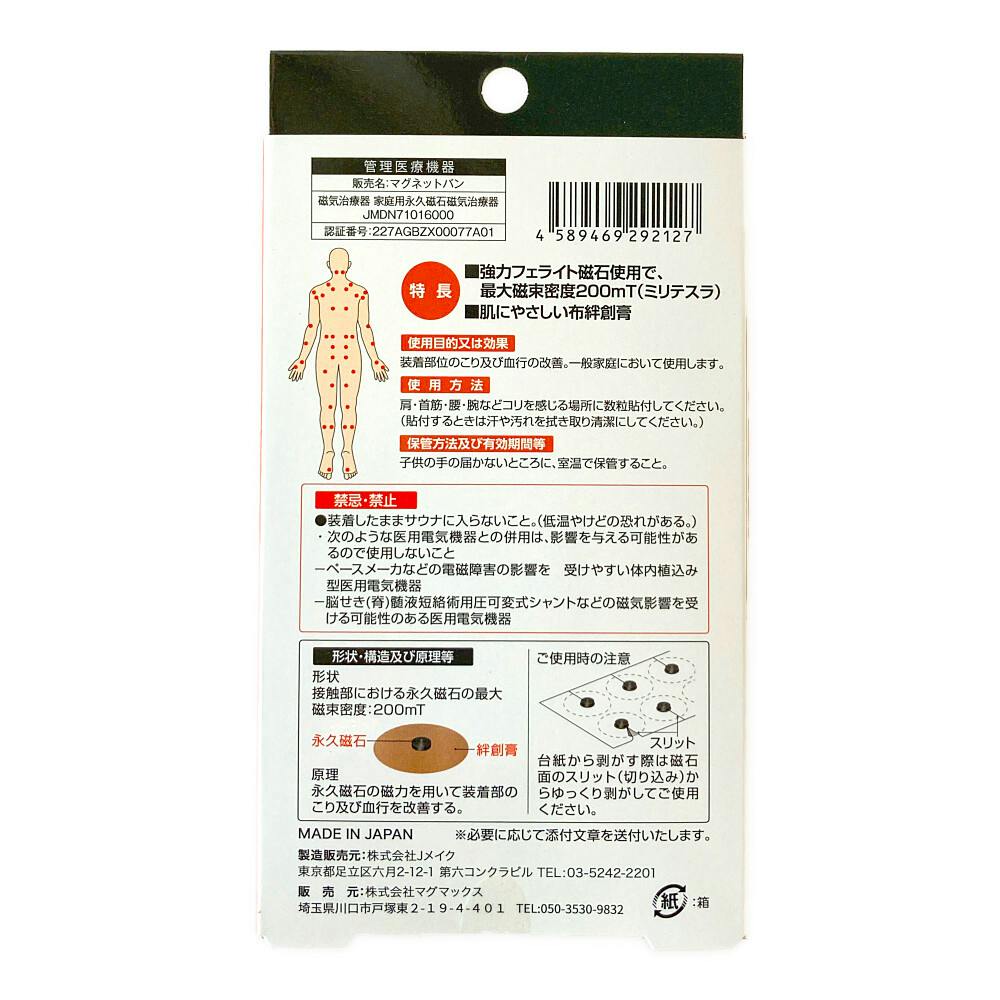 最大磁束密度200mT(ミリテスラ)の強力フェライト磁石使用で、装着部位のコリ及び血行の改善!