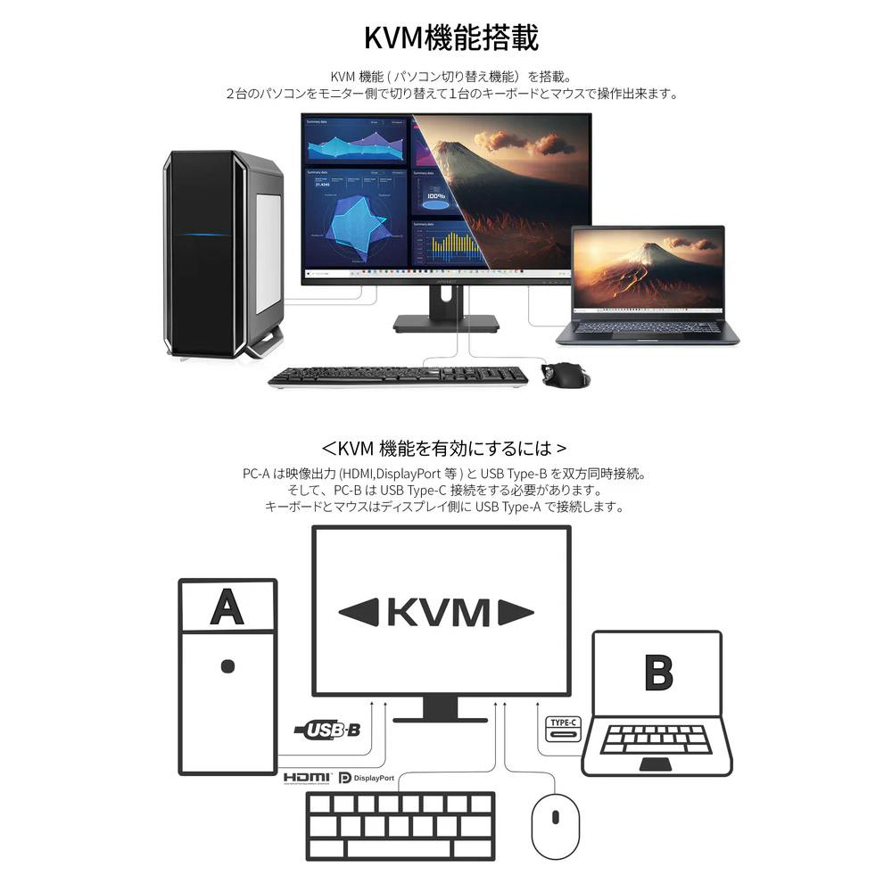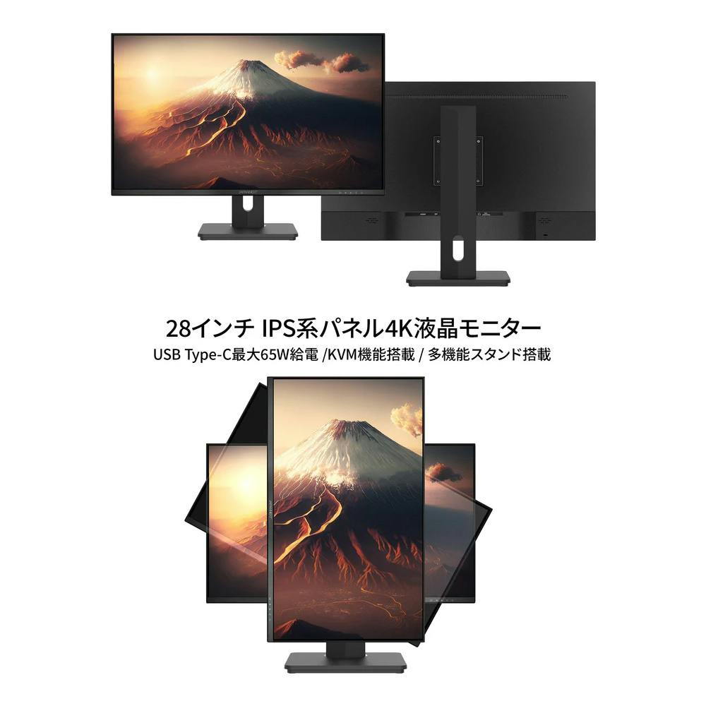 4K(3840 x 2160)解像度に対応した28インチ液晶モニター。フルHD(1920 x 1080)の4倍の高解像度は複数のウィンドウの同時表示を可能。インターフェイスはHDMI 2.0端子(60Hz)、 DisplayPort 1.2端子(60Hz)とUSB-C(最大65W給電/60Hz)を装備し様々なタイプの機器との接続が可能。