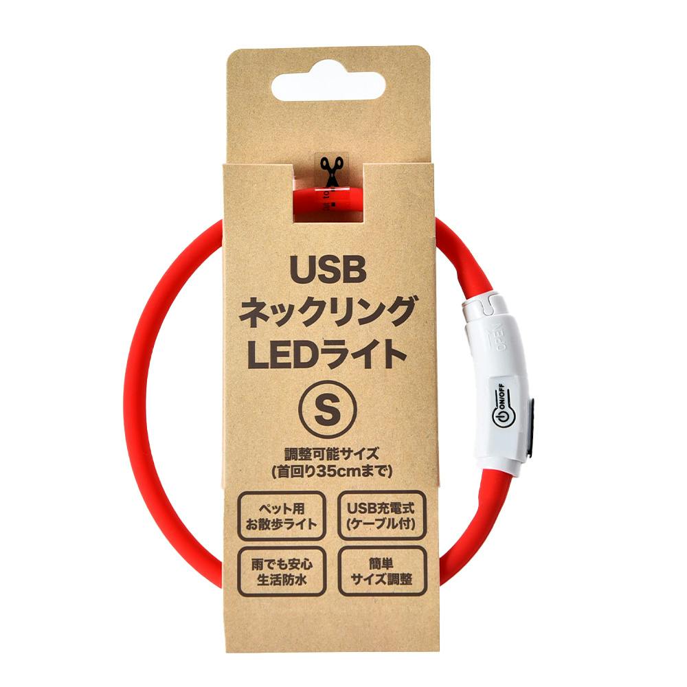 ペット用お散歩ライト、USB充電式(ケーブル付)、雨でも安心 生活防水、簡単サイズ調整:調整可能サイズ(首回り35cmまで)