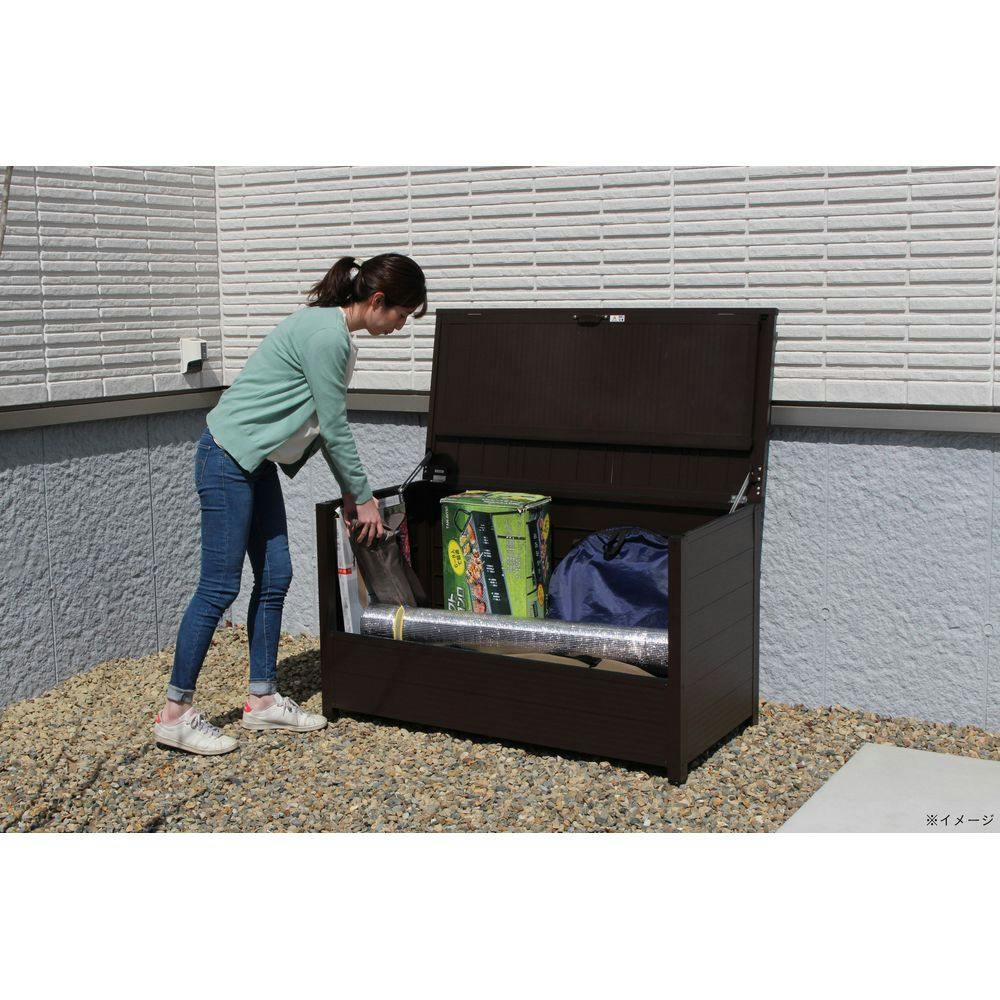 雨・錆に強いアルミ製の収納庫。取っ手を持ち上げるだけで、天板と前扉が同時に開くのでゴミの出し入れがしやすい。水抜き穴が底面についており、排水性が高く雨水がたまりにくい。