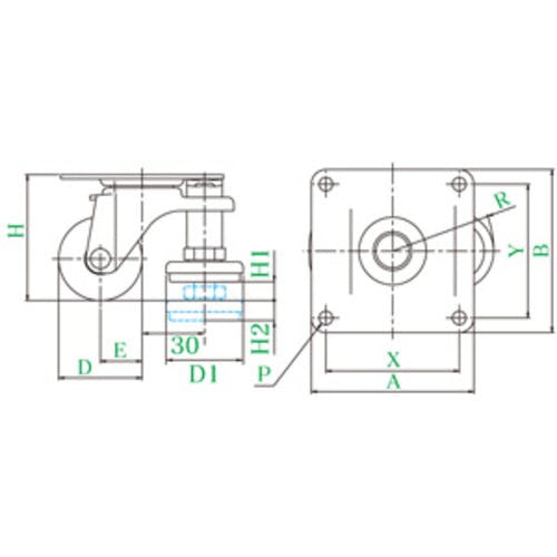 • 【CAINZ-DASH】ユーエイ キャスター事業部 プレート式 自在 アジャスター付キャスター ゴム 車輪径50mm  Eタイプ E-AF型 取付寸法56×28 E-50R-AF【別送品】