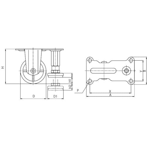 【CAINZ-DASH】ユーエイ キャスター事業部 プレート式 固定 アジャスター付キャスター グレーナイロン 車輪径60mm AFタイプ SR-AF型 取付寸法96×48 SR-60GN-AF【別送品】