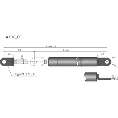 • 【CAINZ-DASH】ユーエイ キャスター事業部 ガススプリング YDGタイプ ストローク236mm 最伸長時反発力343N YDG236343AA【別送品】