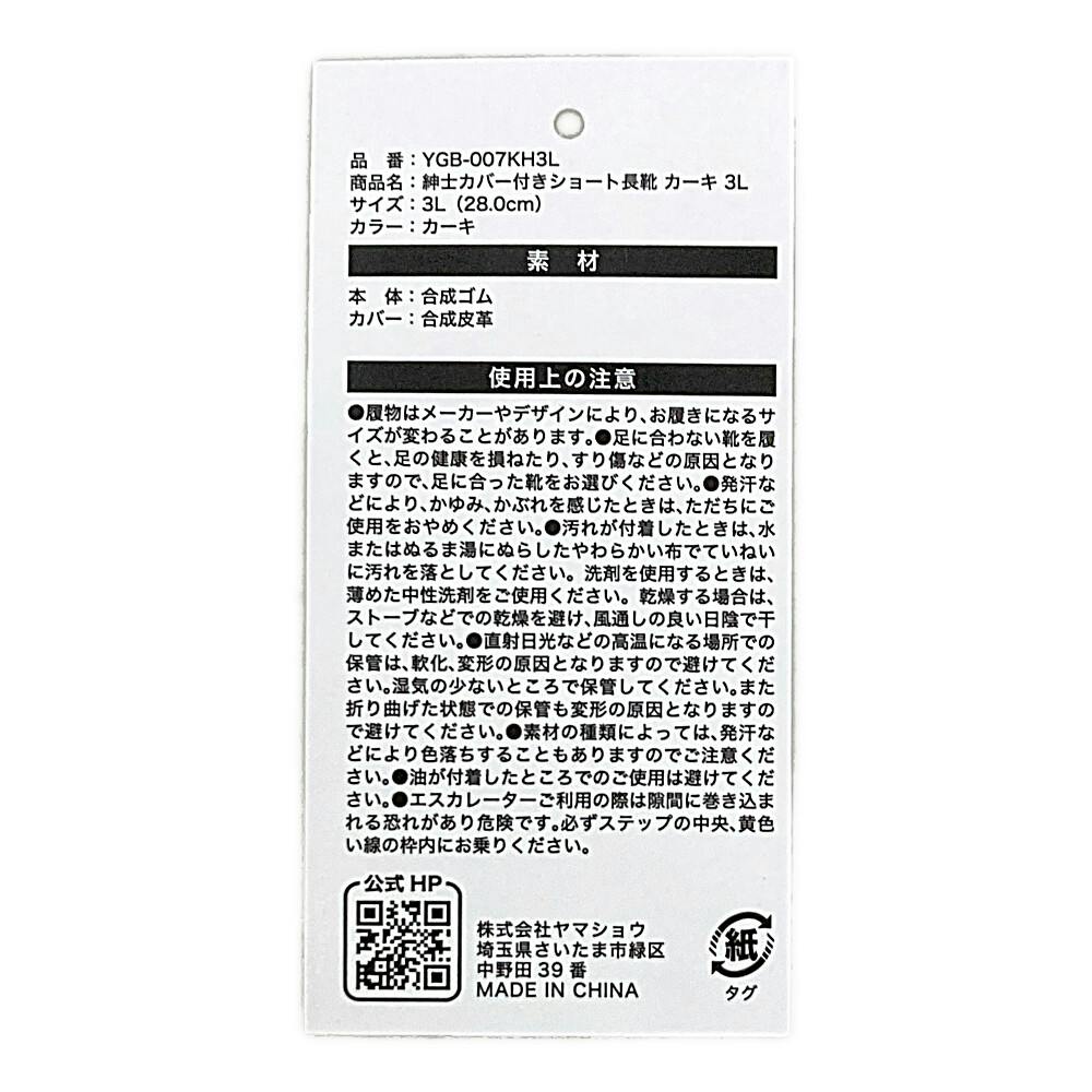 紳士カバー付きショート長靴 カーキ 3L 28.0cm