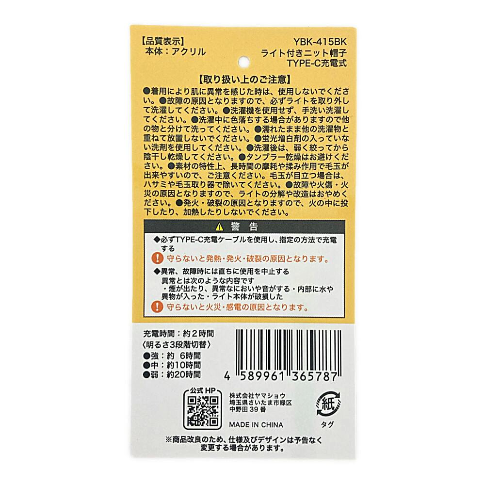 ライト付きニット帽子 TYPE-C充電式 フリーサイズ