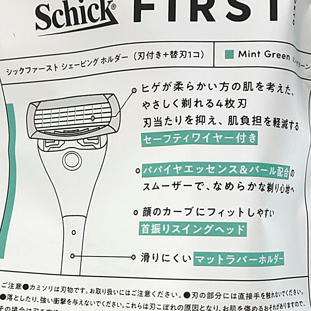 シックファースト シェービング ホルダー ミントグリーン 刃付き+替刃1個