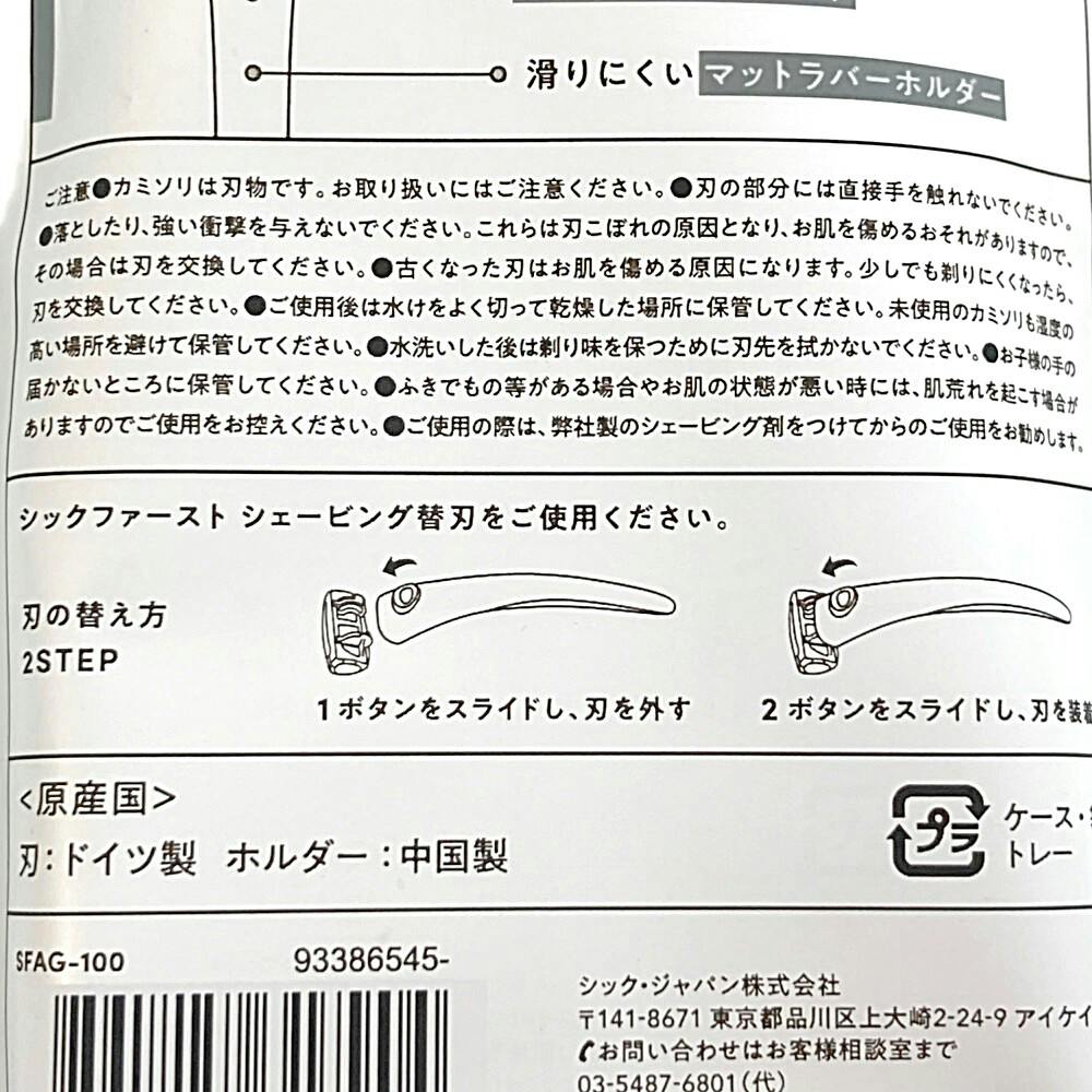 シックファースト シェービング ホルダー アッシュグレー 刃付き+替刃1個