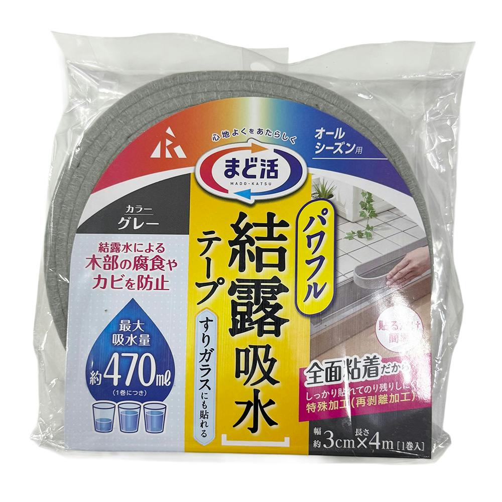 アール まど活 パワフル 結露吸水テープ オールシーズン用 グレー 幅3cm 長さ4m 1巻入