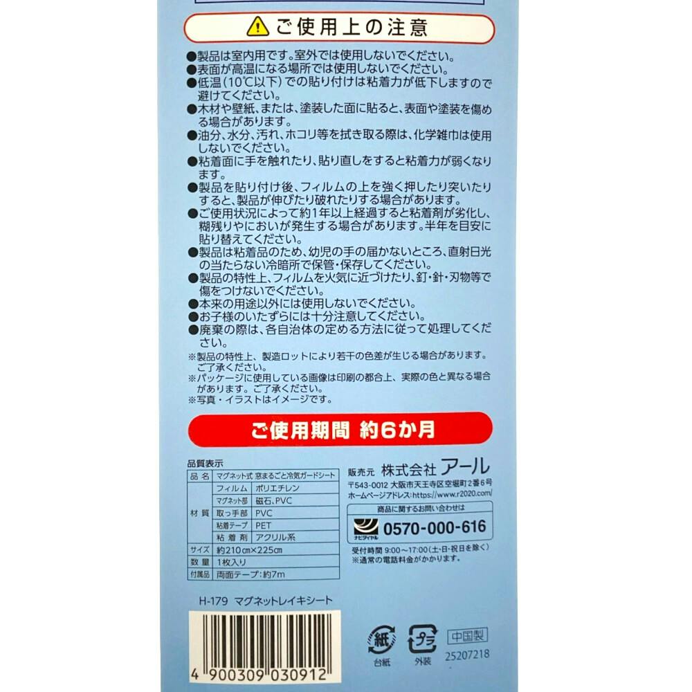 アール まど活 冷気ガードシート 間仕切り マグネット式 クリア 幅200cm 長さ225cm