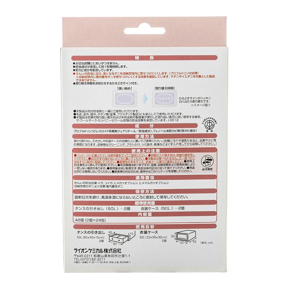 衣類用防虫剤 衣装ケース・引出し用(1年用) 48個入