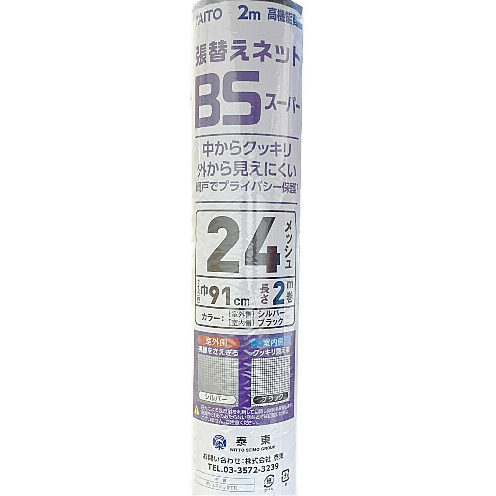 網戸張替えネット BSスーパー 24メッシュ シルバー/ブラック 巾91cm×長さ2m巻