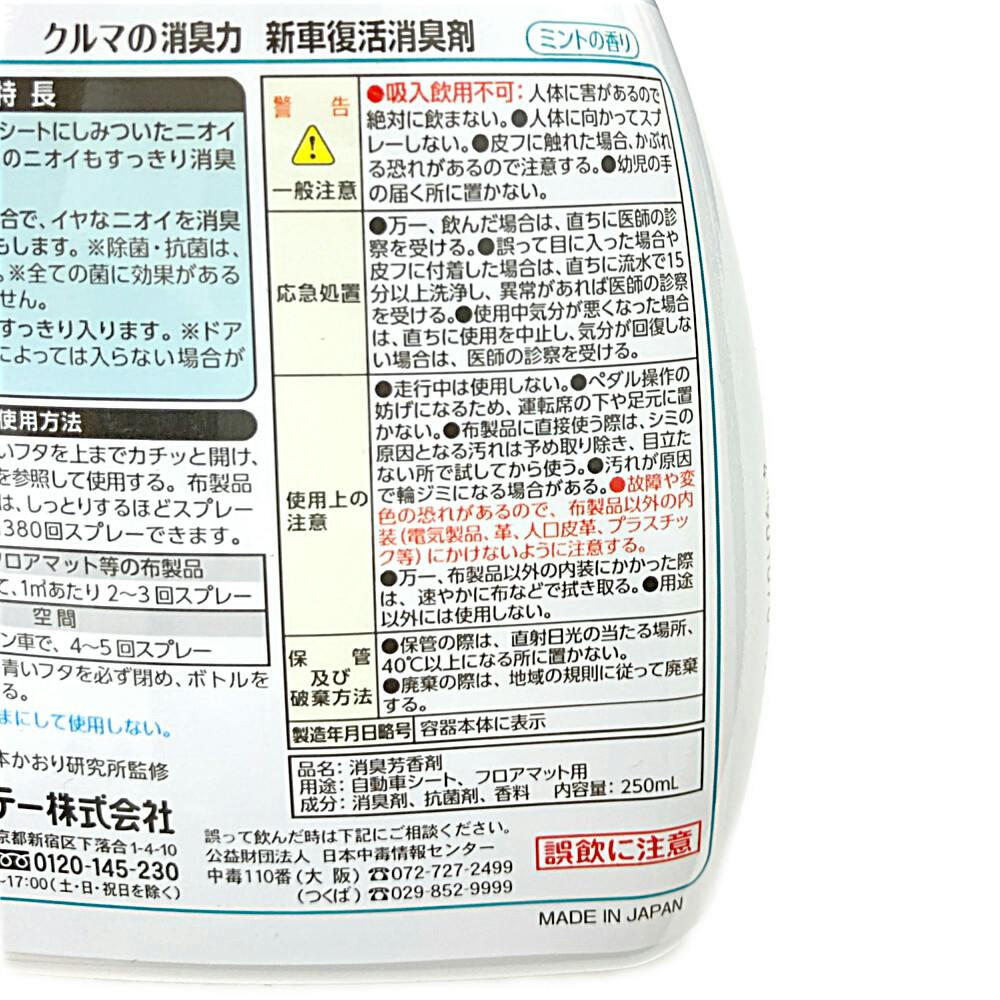 エステー クルマの消臭力 新車復活消臭剤 ミントの香り 250ml