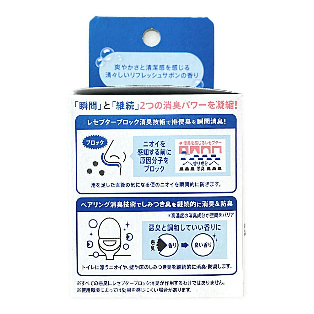 ●レセプターブロック消臭技術で排便臭を瞬間消臭!用を足した直後の気になる便のニオイを瞬間的に防ぎます●ペアリング消臭技術でしみつき臭を継続的に消臭&防臭、トイレに漂うニオイや壁や床のしみつき臭を継続的に消臭・防臭します。