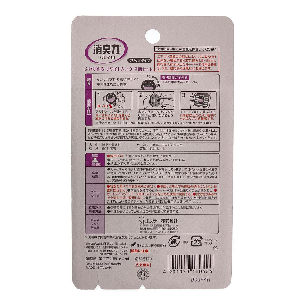 エステー クルマの消臭力 クルマ用 クリップタイプ ホワイトムスク ST16042 2個セット