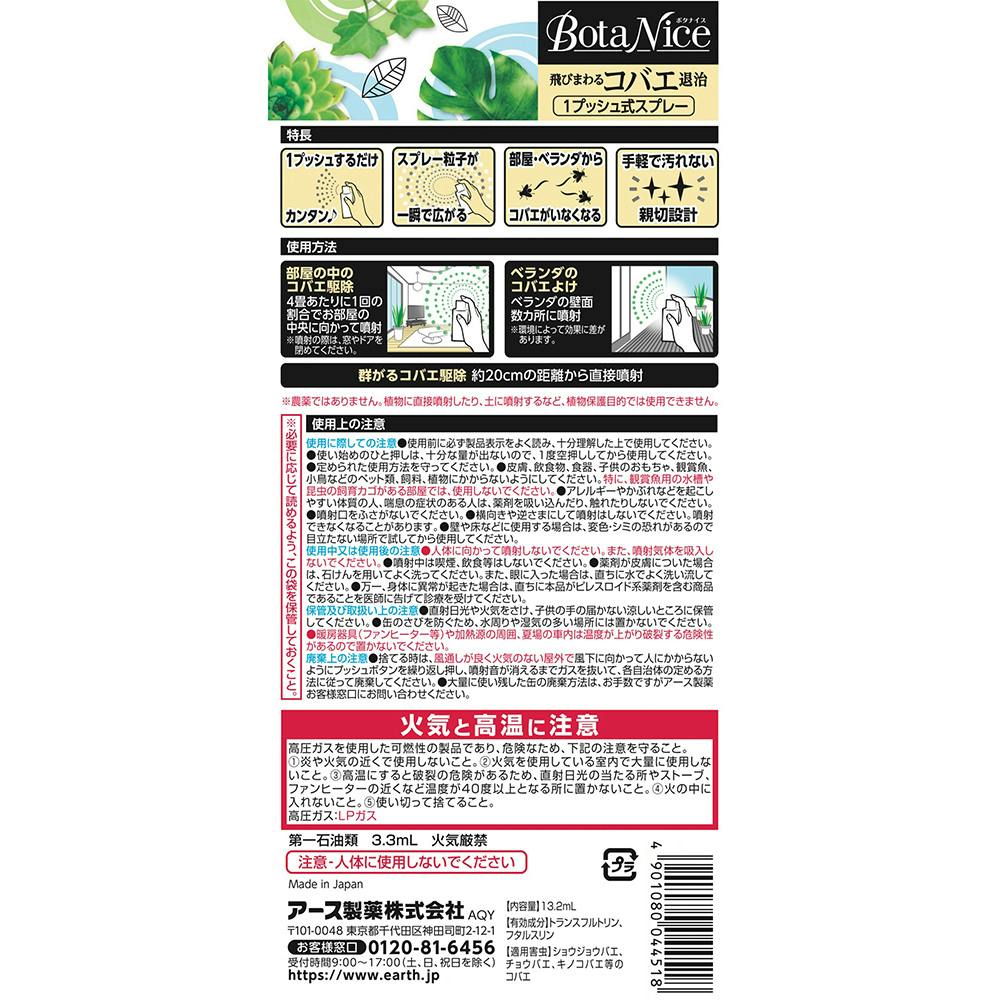 アース BotaNice ボタナイス 飛びまわるコバエ退治 1プッシュ式スプレー 60回分