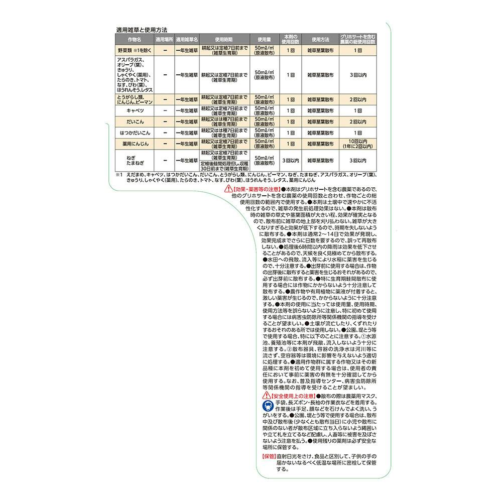 畑でつかえる農耕地用の除草剤。すばやく効いて根まで枯らします。有効成分は土の中ですばやく土壌微生物に分解されます。まきやすい2Lジョウロタイプ。