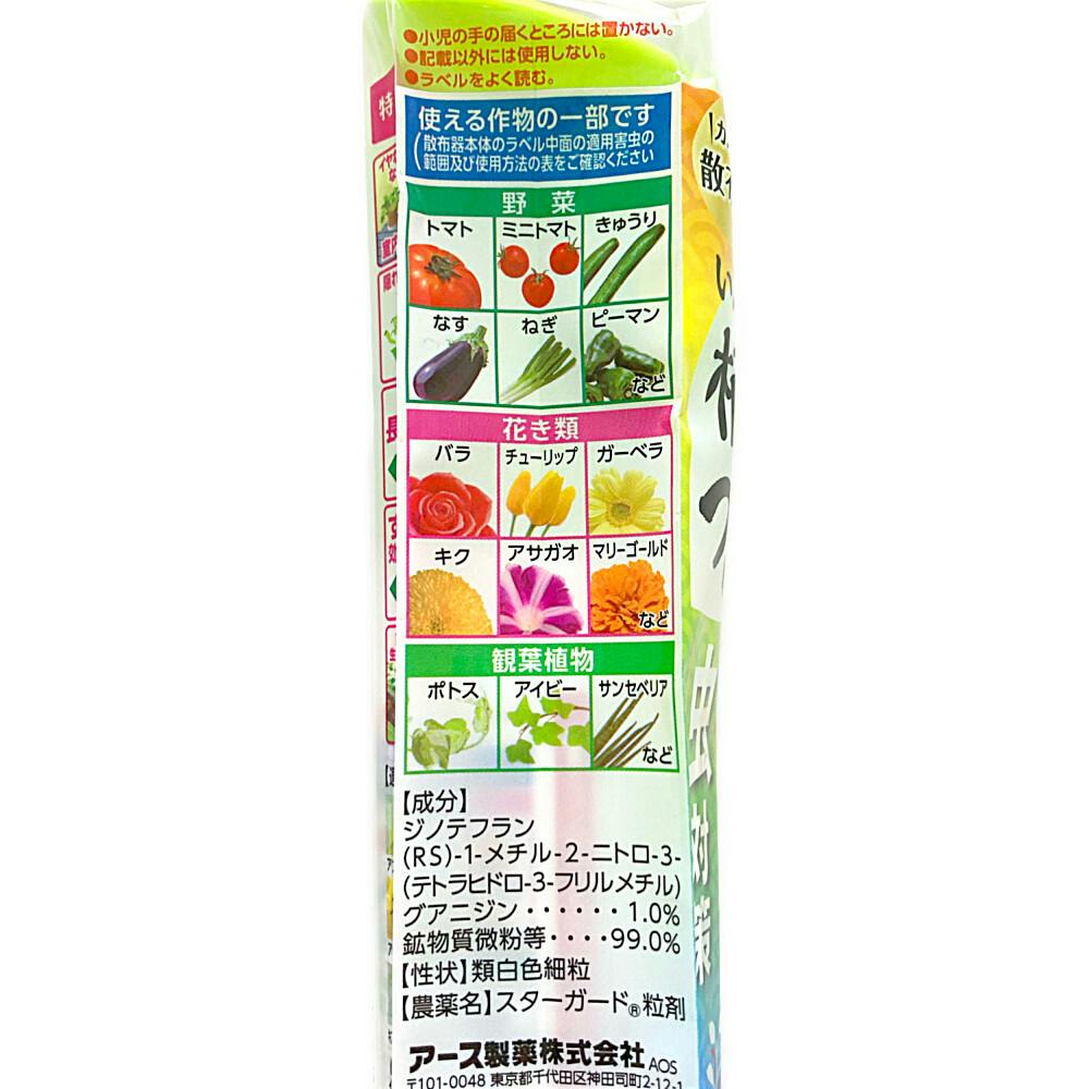 ●イヤなニオイがない粒タイプ ●カンタン散布器 ●さまざまな虫対策 ●根から吸って効きめが広がる!