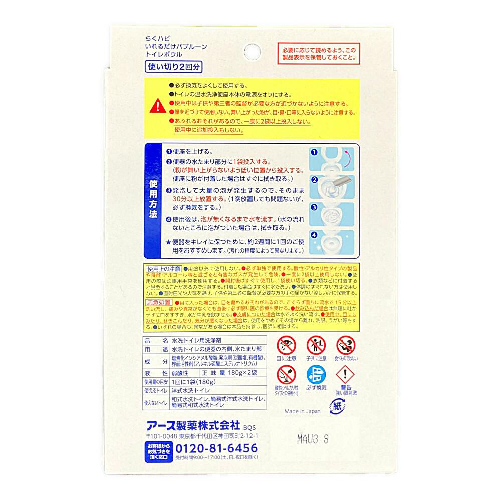 アース製薬 らくハピ いれるだけ バブルーン トイレボウル 2袋入