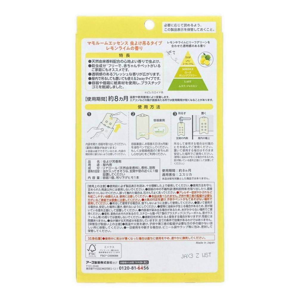 マモルーム エッセンス 虫よけ吊るタイプ レモンライムの香り 8ヵ月用