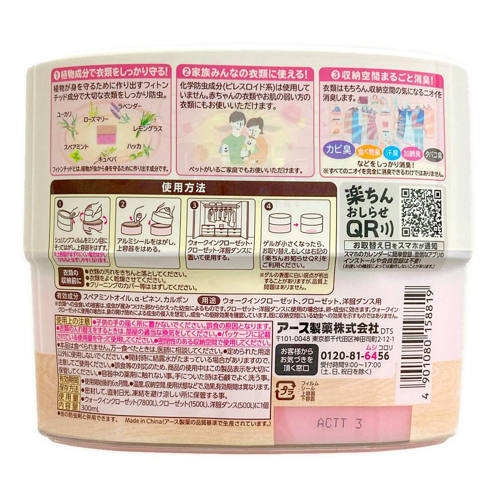 ●植物成分で衣類をしっかり守る/植物が身を守るために作り出すフィトンチッド成分で大切な衣類をしっかり防虫。●家族みんなの衣類に使える/化学防虫成分(ピレスロイド系)は使用していません。赤ちゃんの衣類やお肌の弱い方の衣類にもお使いいただけます。など