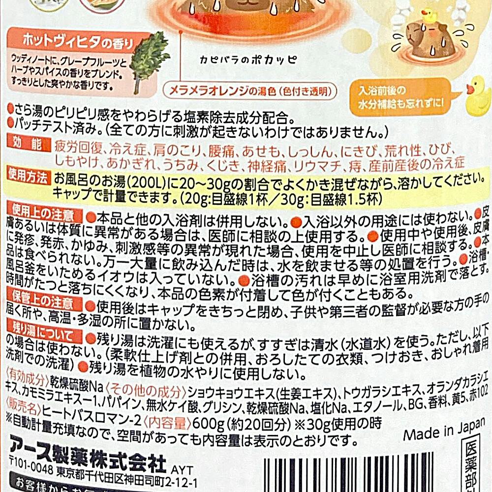 ●使い続けてメラメラ、燃える発汗浴 ●5種の植物エッセンス配合(保湿成分)/生姜エキス、トウガラシエキス、オランダカラシエキス、カモミラエキス、パパイン酵素 ●さら湯のピリピリ感をやわらげる塩素除去成分配合