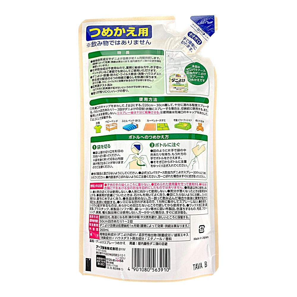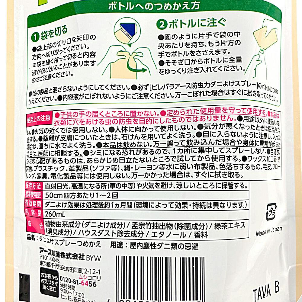 アース製薬 ピレパラアース 防虫力 ダニよけスプレー つめかえ用 260ml