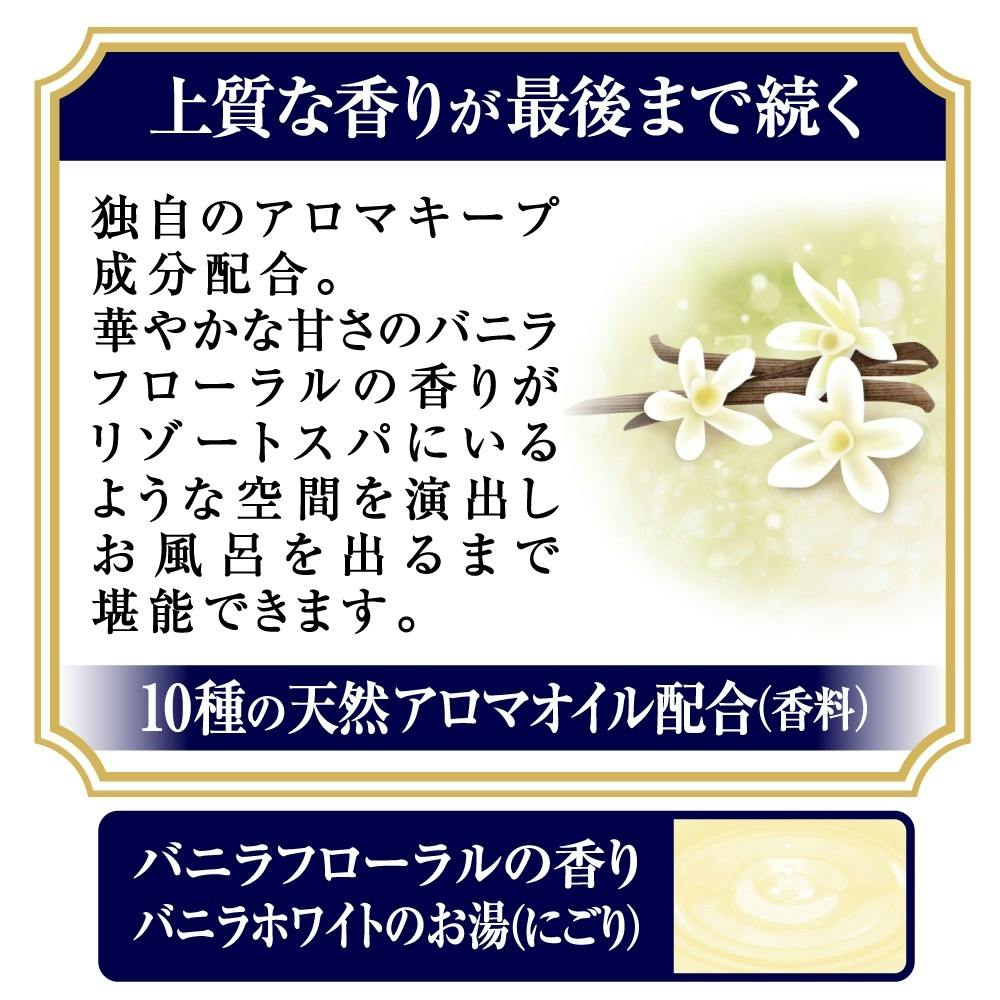 ●10種の美容液成分(保湿成分)を厳選配合●上質な香りが最後まで続く●有効成分が温浴効果を高め血行を促進し、肌荒れ・しっしんに効果的です。●お肌にやさしい天然カミツレエキス配合(保湿成分)●さら湯のピリピリ感をやわらげる塩素除去成分配合