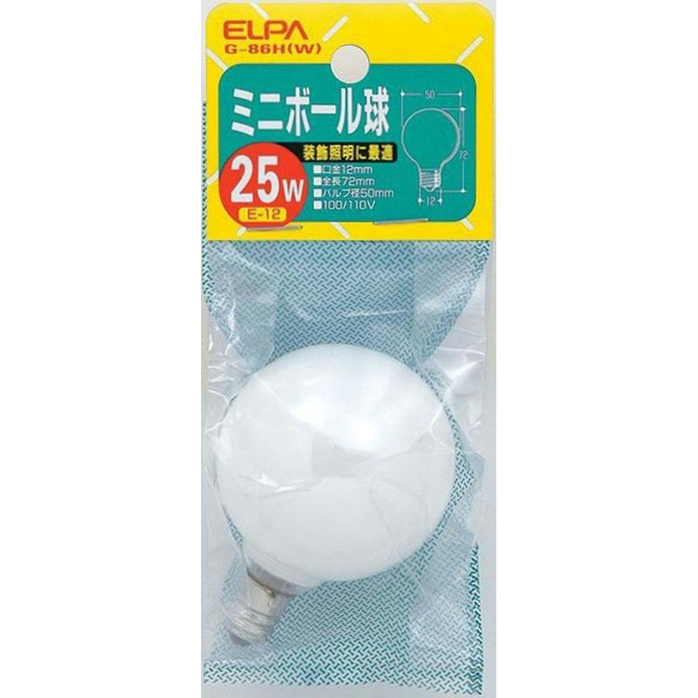 エルパ ELPA ミニボール球 25W E12 G50 ホワイト G-86H (W)