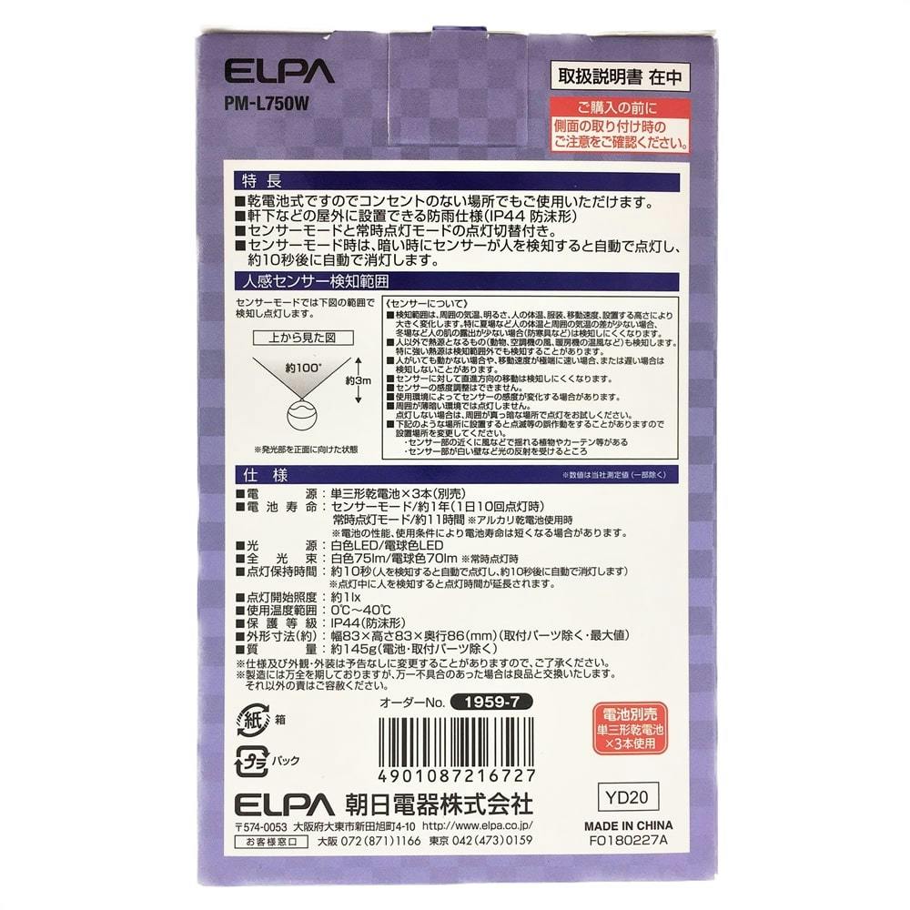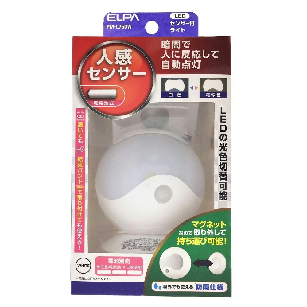 エルパ ELPA LED ナイトライト 乾電池式 明暗&人感センサー 白色光・電球色光 PM-L750W